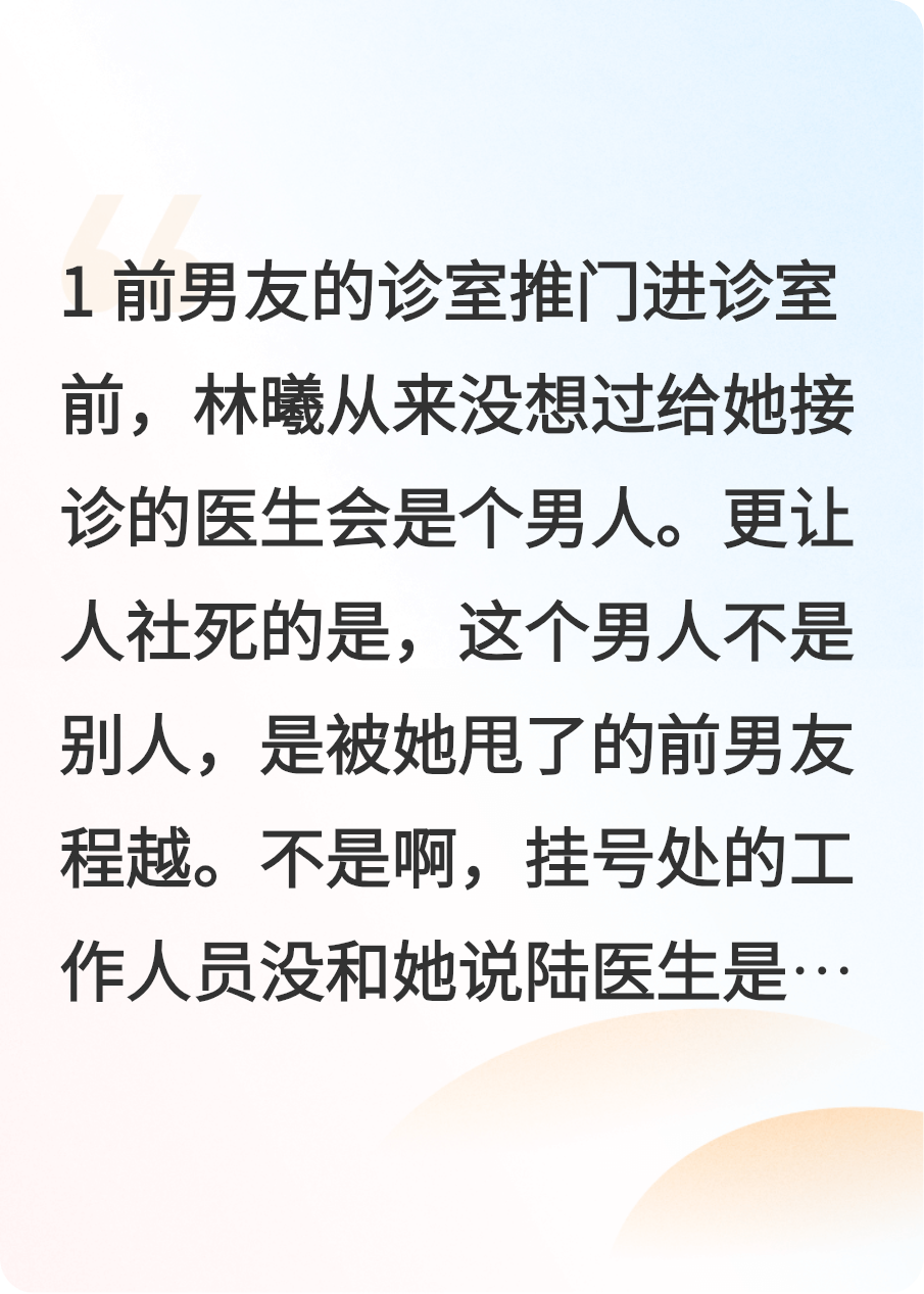 男女主角分别是【林曦程越】的现言甜宠,破镜重圆小说《给我看妇科的,竟然是我前男友》,由新晋小说家“Maybe55555”所著,充满了奇幻色彩和感人瞬间,本站无弹窗干扰,欢迎阅读!本书共计5122字,1章节,更新日期为2025-11-17。该作品目前在本网 【sosoxx.com】上完结。小说详情介绍:给我看妇科的,竟然是我前男友
